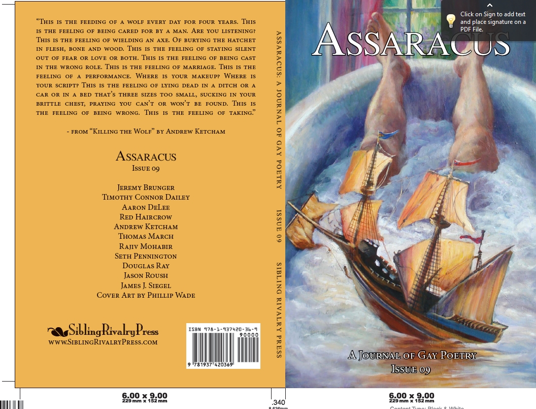 Assaracus is the only print journal in the world dedicated to poetry of gay men. Each issue of Assaracus features a substantial portfolio of work by ten-to-twelve emerging or established gay poets.
