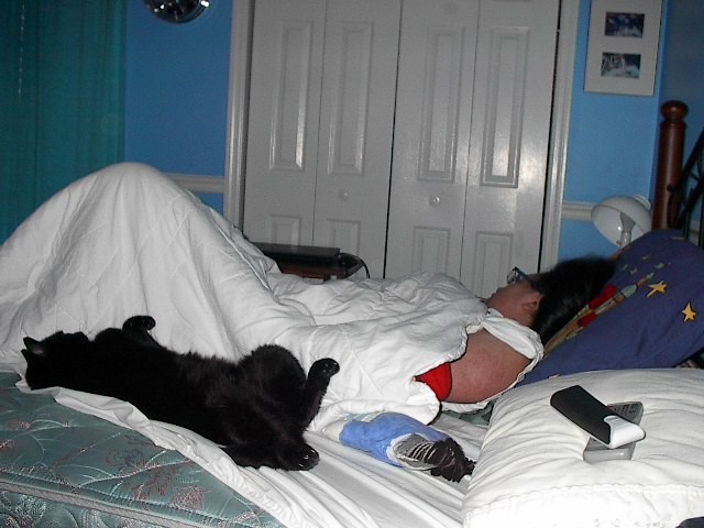 I’d never intended to get a cat, but when a regular customer to a 2nd hand book shop I worked in (in order to get all those rare tomes I love) came in lamenting her son had far too many, kittens still coming and in a bad environment, I decided to go over and see if I could help. People like that really need help. A product of in-breeding and in deplorable conditions, he was the lone black cat in a herd of adults and a few babies, near starved and obviously kicked about a lot by the other cats as he was total low on the prestige chart.