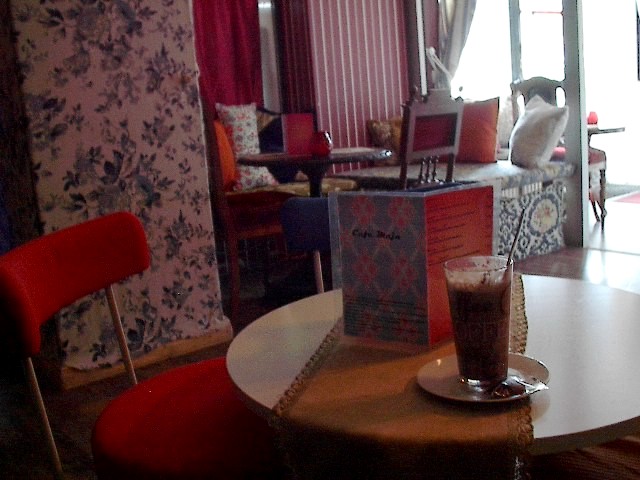 Café Maja. A very nice, stylish yet comfortable atmosphere, intriguing decor, an accommodating host, and what isn’t always easy to find, though there are literally thousands of such places across the city: a drinking spot that had a wonderfully intimate feel even in the afternoon. It’s not often I take a seat, cross my legs in front me and relax with an arm across a seat back, but this place invited it.