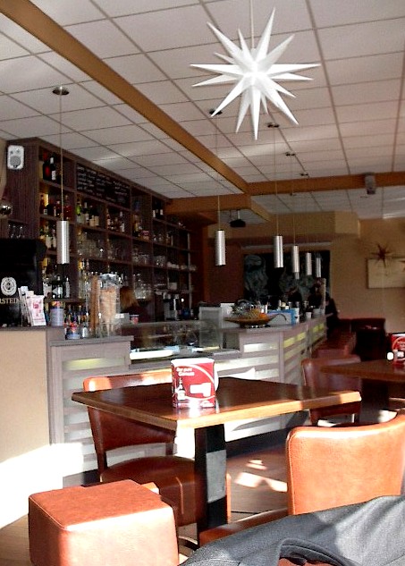 So I took a leisurely trip to the lake, stopping first in Fürstenwalde for a beer and appetizer, since I had to wait for the bus to Bad Saarow anyway. Herrlicher Bar and Café is at the corner of Eisenbahnstrasse, one of the main streets of the town.
