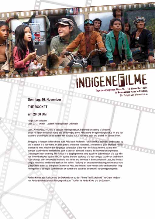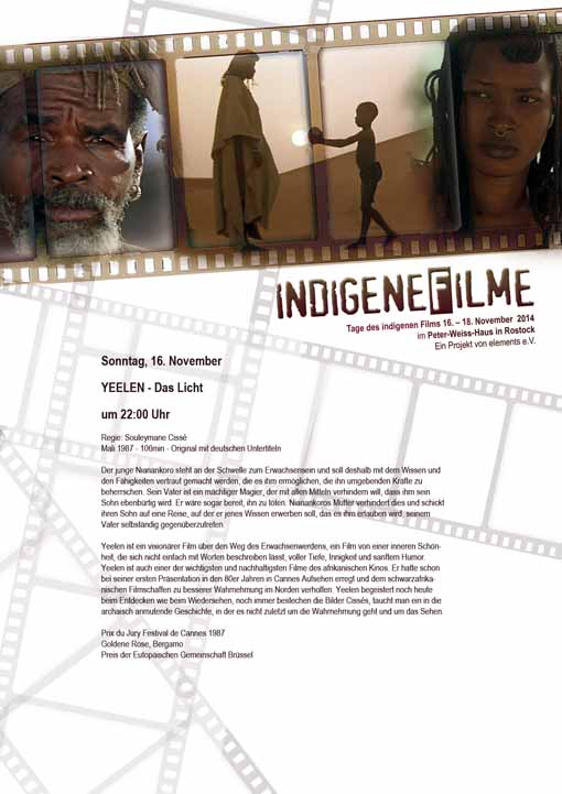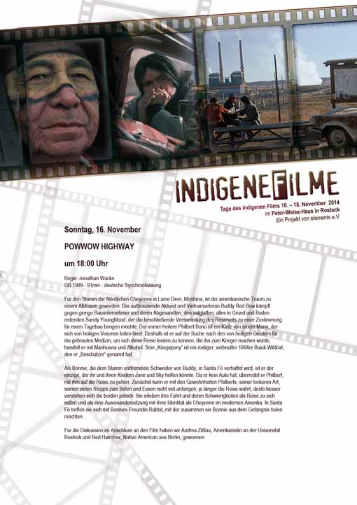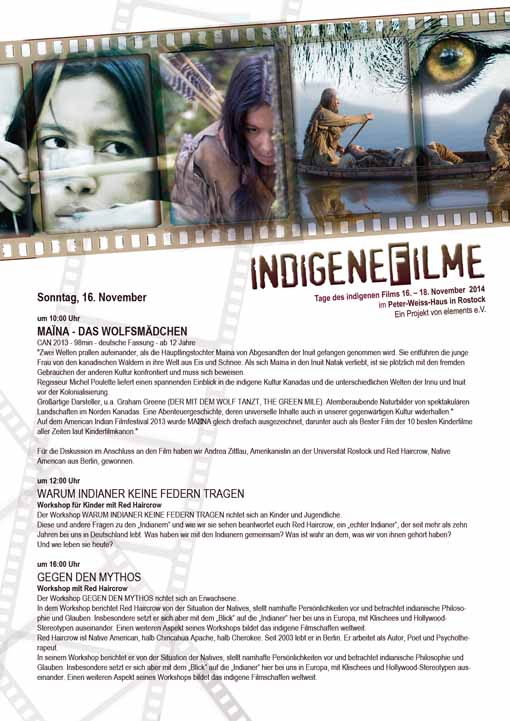 This Sunday, 16 November 2014 in Rostock, Germany I’ll be giving two workshops at the “Tages des Indigenen Films”, a multicultural event to help spread understanding and knowledge of indigenous peoples speaking for themselves using the medium of feature film and documentary.