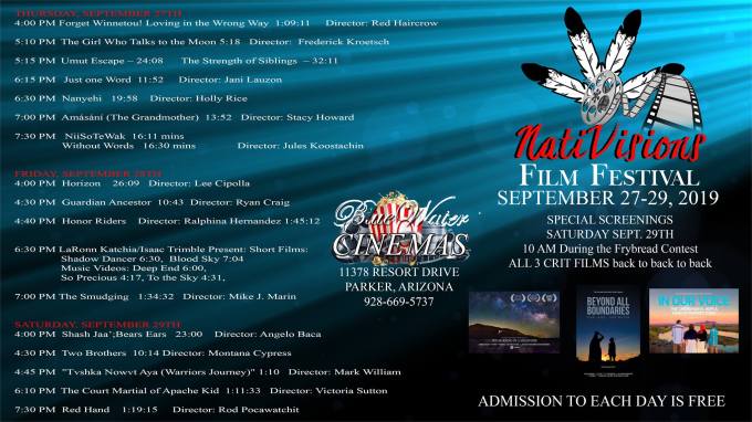 Great to be part of a film festival with so much enthusiasm, taking place at Bluewater Cinemas in Parker, Arizona. If you’re in the area and have time, check out some of the great films and shorts that will be available! Please visit their website or Facebook page for more details.