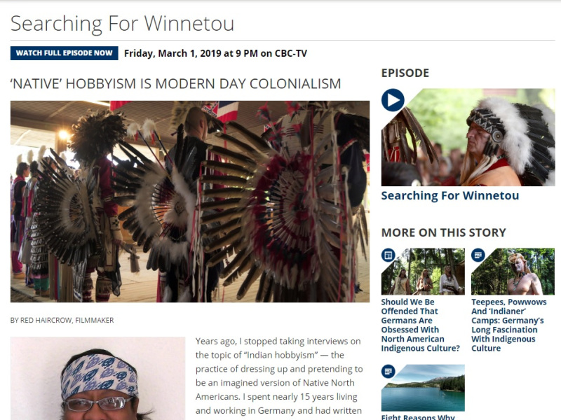 From my article at CBC, Native Hobbyism is Modern Colonialism. It’s truth for anyone, but especially for a clearly bogus profile who posted a “too bad you can’t understand (racism) its just appreciation” comment to my page.