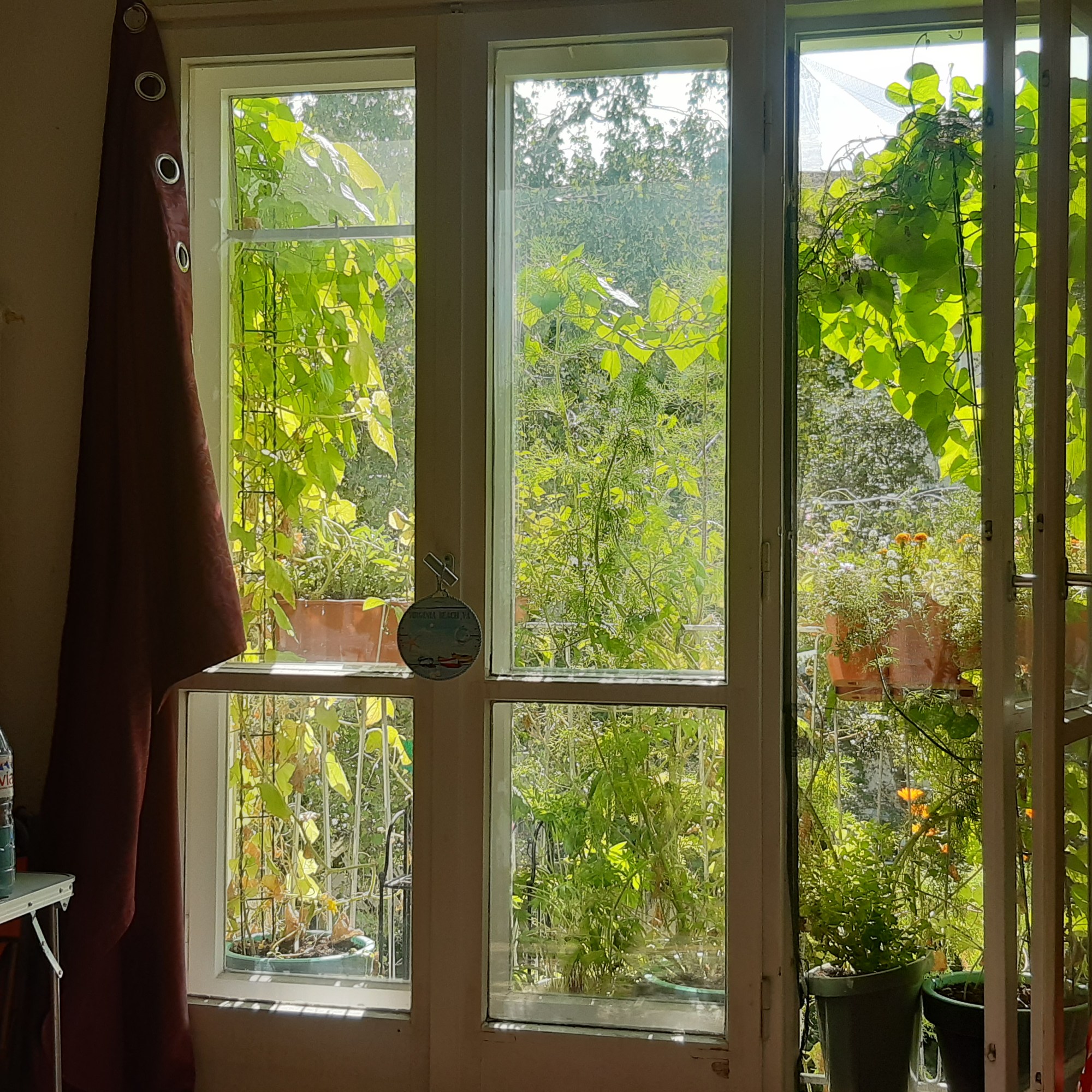 The sweet green scent of string beans! These are the few gathered from my balcony garden, and as I prepared them, that clean smell rose up, taking me back to sitting on my grandma Bunch’s porch snapping beans as a kid.
