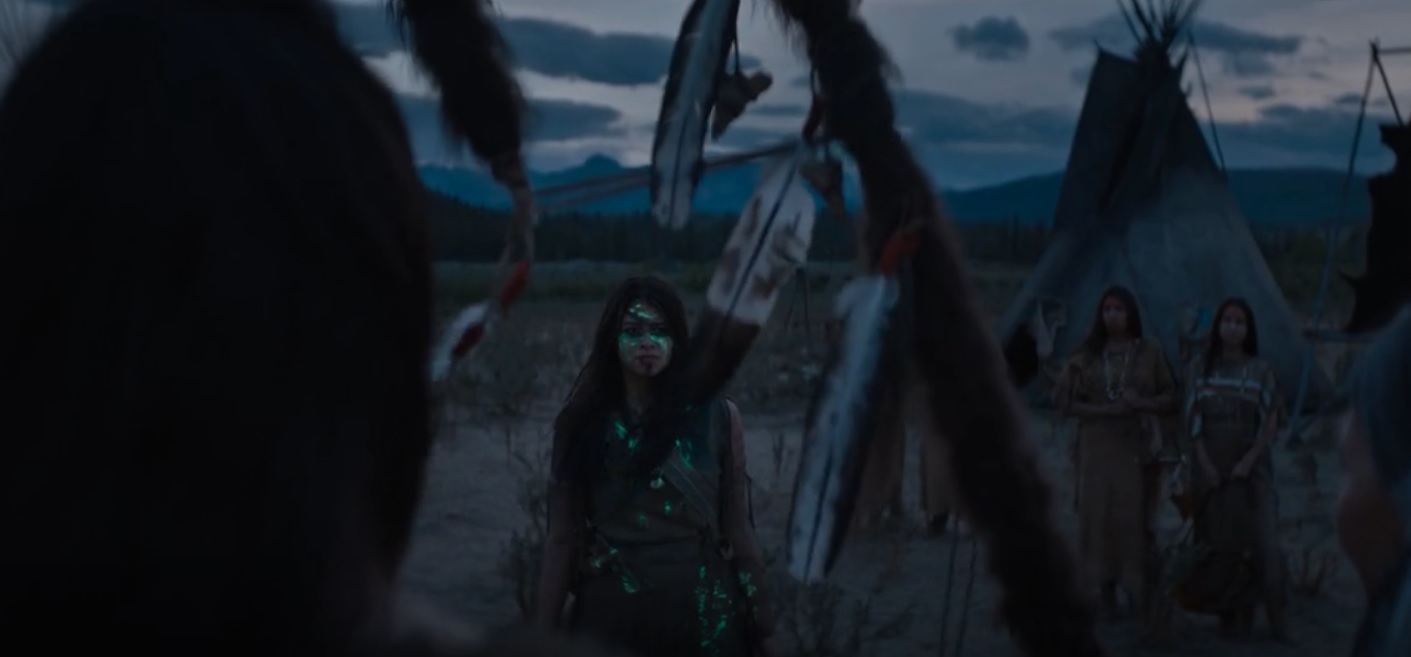Set in 1719, in what was renamed North America by European colonizers despite Indigenous peoples having their own names for it, the story centers on a young Comanche woman named Naru who is played by Amber Midthunder. Naru wishes to be more than a gatherer and caregiver, she wishes to also be recognized as a hunter, which some viewers have surmised to suggest she was a “Two-spirit” person (1). Not necessarily. To my understanding, the characters in film never say this about Naru, but unlike European interpretation and stereotypes of Native life (and even their own pre-colonialization millenia), each member of the community needed a wide range of skills, for example, sewing, gathering and knowing healing items, finding and cooking food, to building and animal husbandry. Tasks were not gender-specific/only, a practice of labeling to support patriarchy, hierarchies and discrimination shared and enforced by Christians first in Europe, then in the Americas (2).